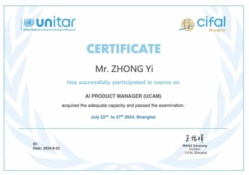 “推动创新”是联合国“2030可持续发展议程”的目标之一。创新是经济可持续发展的钥匙。联合国呼吁所有企业利用它们的创造力和创新能力来应对可持续发展的挑战。为此,联合国训练研究所CIFAL中心推出了“创新及产品开发管理能力建设项目”,而“UCAM人工智能产品经理”证书是其中涉及AI产品开发管理的专项能力证书。